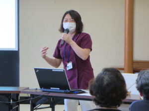 令和5年2月11日、白山市の地域サロンからのご依頼で、耳寄りな講演会「脳卒中(脳出血・脳梗塞・くも膜下出血)について」を白山市の西橋爪区町内集会所で対面で実施しました。19人の方が参加されました。講師は山本病院長です。
